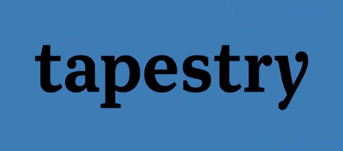 The Tapestry Font is a custom-designed typeface used in the Tapestry brand identity, featuring elegant, fashion-forward letterforms with a refined serif style that gives the wordmark a luxurious, sophisticated, and premium look. The typography reflects Tapestry’s position as a high-end house of modern luxury brands.