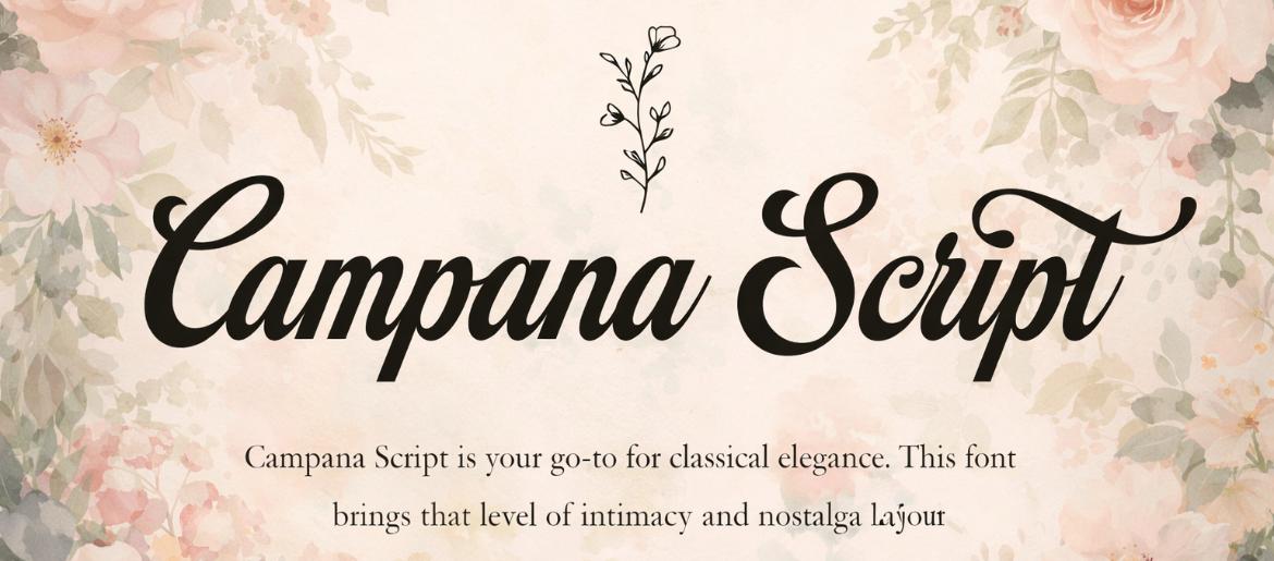 Campana Script Font is an elegant, flowing script typeface with graceful curves and a refined handwritten style. Its smooth strokes and stylish flourishes make it perfect for logos, wedding invitations, branding, quotes, and luxury designs. Campana Script adds sophistication, romance, and a timeless handwritten charm to any project.