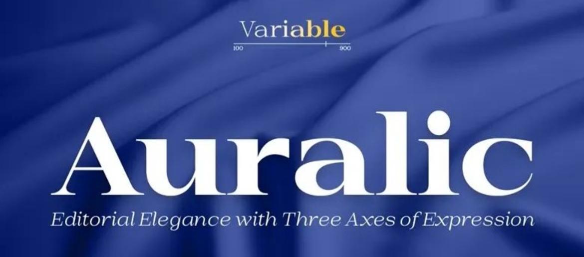 Discover Auralic, a stunning variable serif typeface that seamlessly blends editorial sophistication with contemporary flair. This remarkable font showcases three distinct axes of variation, offering designers an impressive palette of 180 unique styles to explore. Its defining characteristics include dramatic high-contrast strokes, refined serifs, and gracefully curved letterforms that radiate both luxury and professionalism.
