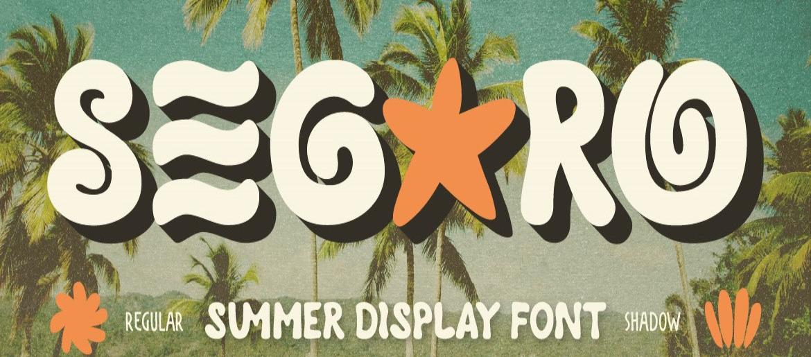 Segaro by Artisan Template is a fun, chunky summer display font radiating tropical warmth from every curve. Inspired by beach days and golden-hour light, its rounded, groovy retro letterforms feel bold and friendly without losing a drop of character. The demo release comes with Regular and Shadow styles, plus alternates and ligatures for more dynamic, custom-looking compositions. It shines on summer branding, packaging, posters, social media graphics, and anything with a retro tropical soul. Free for personal use.