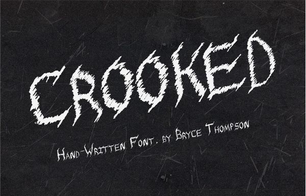 Crooked by Bryce Thompson is a freaky font that lives up to its name in the most satisfying typographic sense — letterforms that feel deliberately misaligned, irregular in a way that reads as deeply unsettling rather than carelessly executed. The darkness here is not ornamental; it is structural. Drawing from the gothic tradition of heavy, angular letterform construction while introducing the kind of irregular, hand-crafted distortion that gives the type its particular creepy character, Crooked finds the space between blackletter severity and something more personal and strange. Free for personal use.