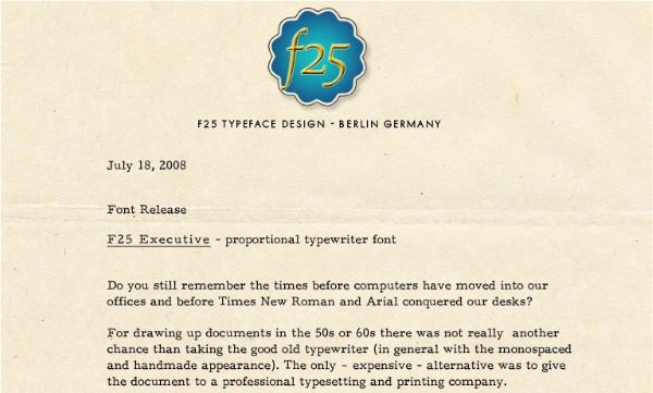 F25 Executive is a professionally authoritative and generously licensed addition to our free font collection, from Volker Busse of F25 Digital Typeface Design — the same German type designer behind Typewriter Condensed, whose typewriter font releases consistently deliver useful typographic tools. Browse our full library of free fonts and discover more distinctive typefaces crafted by independent designers around the world.
