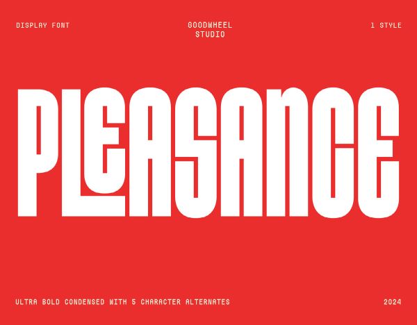 Pleasance is an impressive and technically well-equipped addition to our free font collection, developed by Indonesia-based Goodwheel Studio alongside Ilham Herry and Akbar Gumelar — a creative team with a strong track record in display type design. The full version is available on Creative Market, Gumroad, and MyFonts. Browse our full library of free fonts and discover more distinctive typefaces crafted by independent designers around the world.