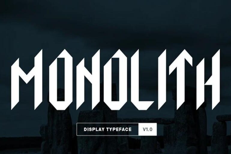 Monolith Font Monolith by Georges Yannopoulos is a blackletter-inspired geometric display typeface built around a single powerful design constraint: every glyph was constructed around a vertical pillar pointing upward, directly referencing the monolith — the large single upright block of stone most recognizable as a pillar or ancient monument. The result is a typeface that fuses the angular, vertical thrust of Gothic blackletter with the measured precision of geometric construction, creating something that feels simultaneously…