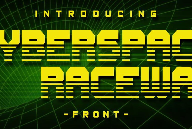 Cyberspace Raceway Font Cyberspace Raceway by Chequered Ink is a bold, all-caps futuristic display typeface that channels the high-octane visual energy of 1980s sci-fi design. Its geometric block letterforms carry a sense of velocity and technological edge that makes them a natural fit for gaming interfaces, esports branding, sci-fi movie titles, retro-tech posters, and any project looking to project speed, power, and a distinctly retro-futuristic attitude. Sleek, angular, and built for maximum impact. Free for…